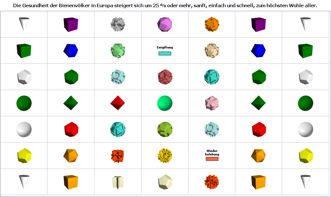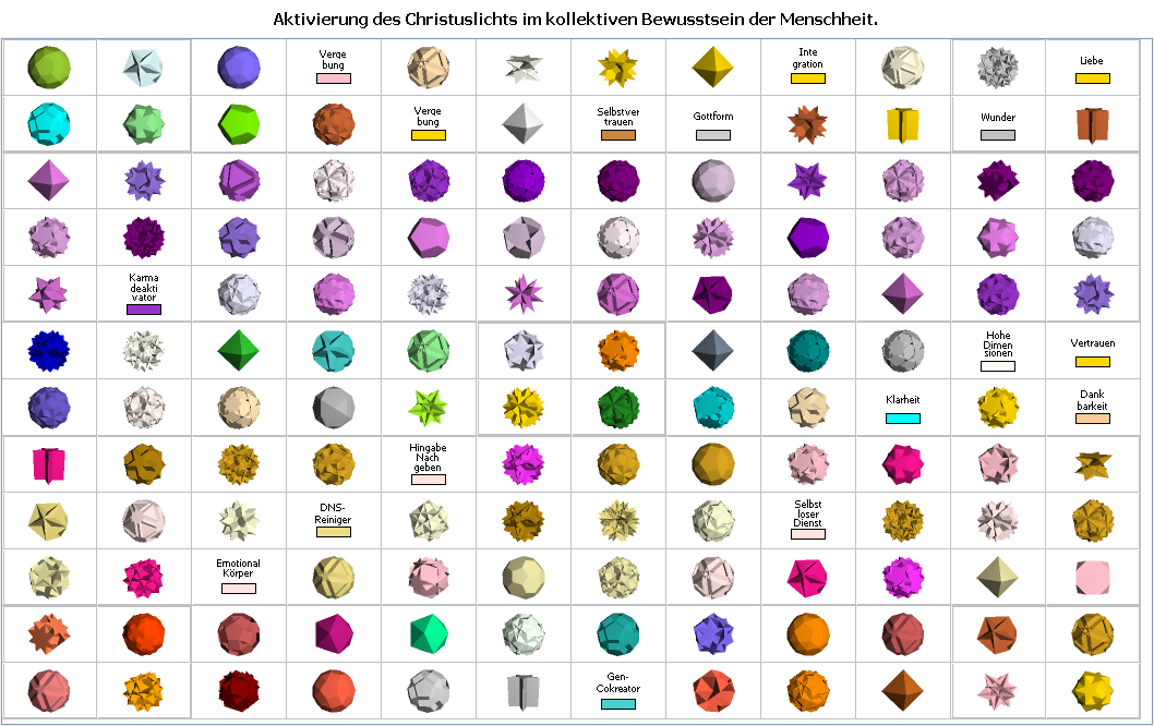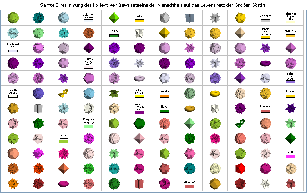 Persönlichen Grids, mit 7 oder 12 Formen, die in der Aura wirken, auf der Ebene der 7 Hauptchakren (Energiezentren) oder im erweiterten 12-Chakren-System.
