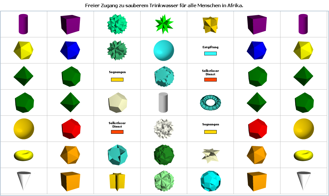 In der Lichtsprache schreiben wir sogenannte "Grids", Kombinationen von mehreren farbigen Formen, die eine neue Energiematrix für einen bestimmten Bereich oder ein Thema erstellen. Gerne kreiere ich Grids für deine individuellen persönlichen Bedürfnisse. Das Thema des Grids erarbeiten wir gemeinsam im Vorfeld.